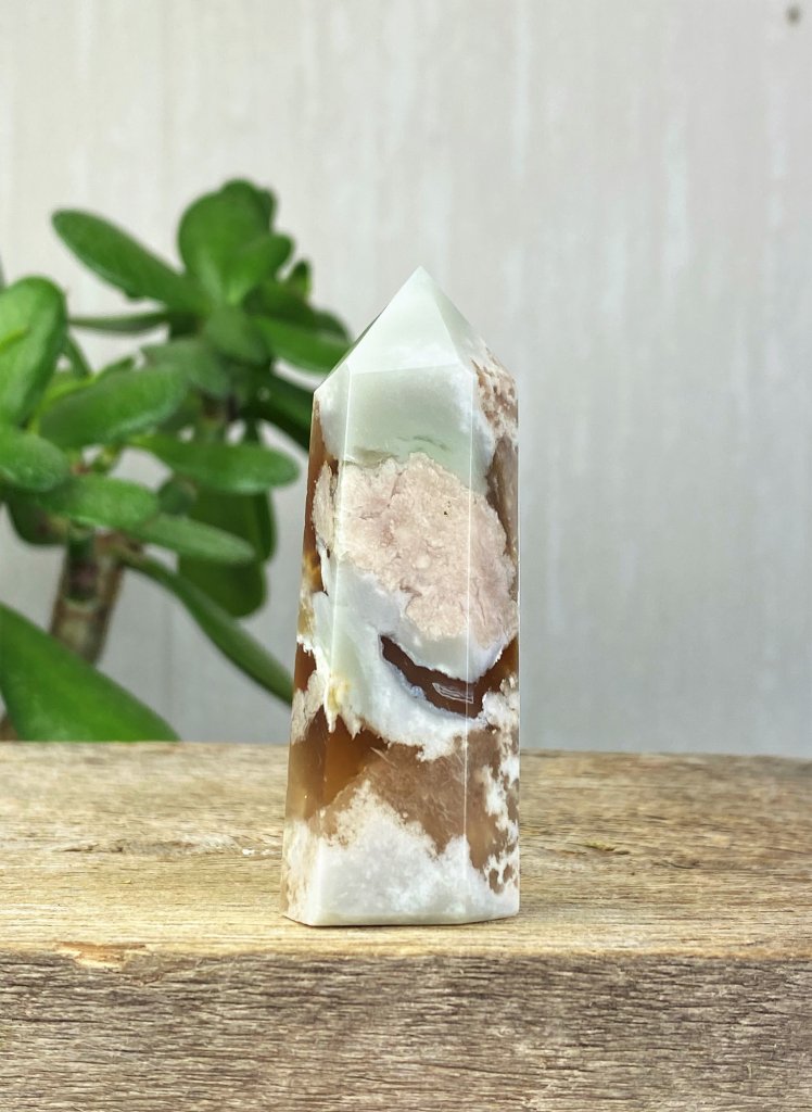 Flower Agate is also called Cherry Blossom Agate and is named for its appearance, pattern and color combination that is reminiscent of flowers. It has been used worldwide for thousands of years both for its beauty and also in rituals for its guiding properties the crystal is said to carry.
