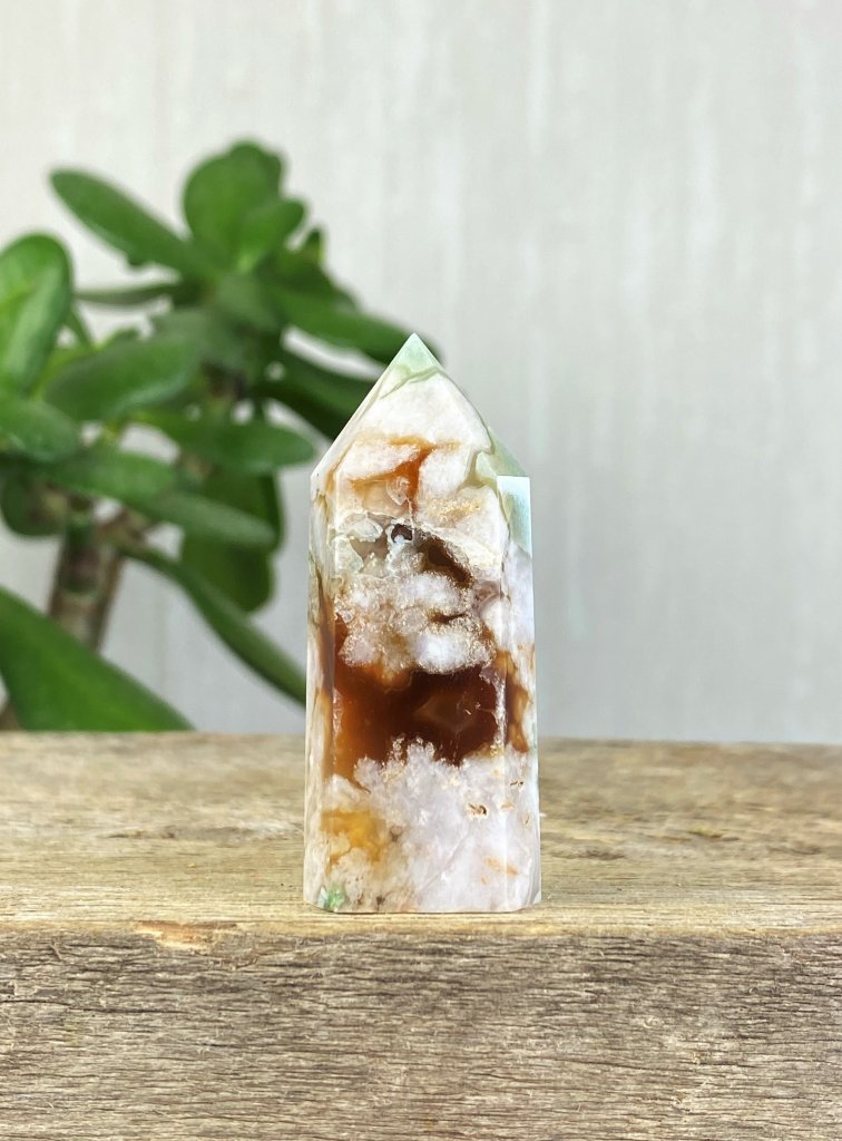 Flower Agate is also called Cherry Blossom Agate and is named for its appearance, pattern and color combination that is reminiscent of flowers. It has been used worldwide for thousands of years both for its beauty and also in rituals for its guiding properties the crystal is said to carry.