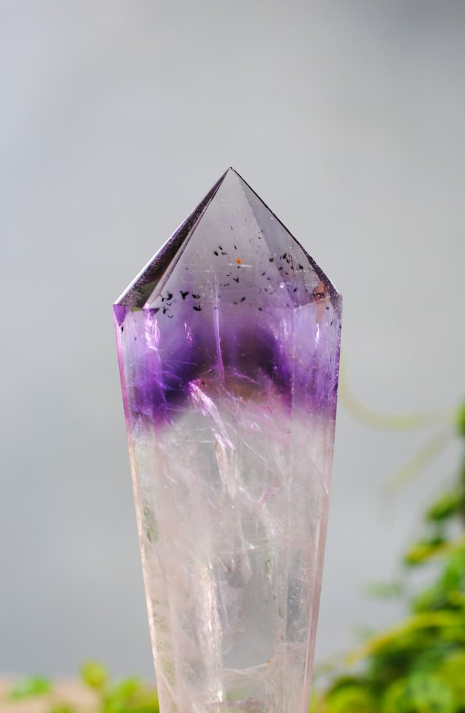 Smoky Amethyst is a combination of Amethyst and Smoke Quartz, often there is a phantom or a distinct point or area in the crystal. An extremely good combination in healing. It creates contact with the highest possible spiritual energy and then puts the energy into the body.