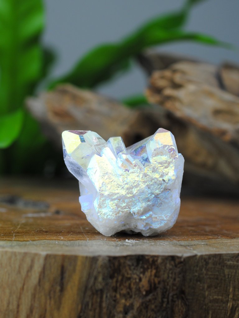 Angel Aura is a very beautiful crystal that is treated to bring your rainbow-like colors. The crystal is a real stone vs. a quartz (rock crystal) that is dipped in precious metals and then treated in a "pressure chamber" where it gets its permanent color.