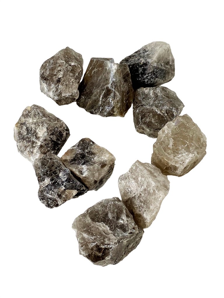 Fine raw stones of Smoky Quartz. The stones vary in natural appearance, such as colors, shades and shapes.