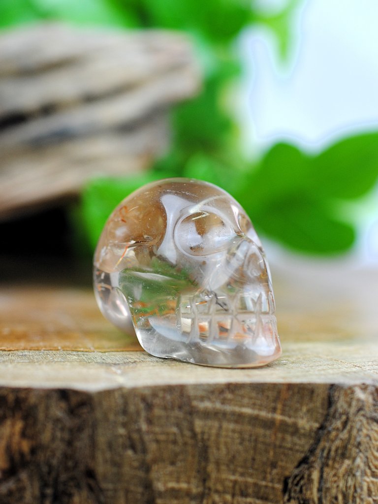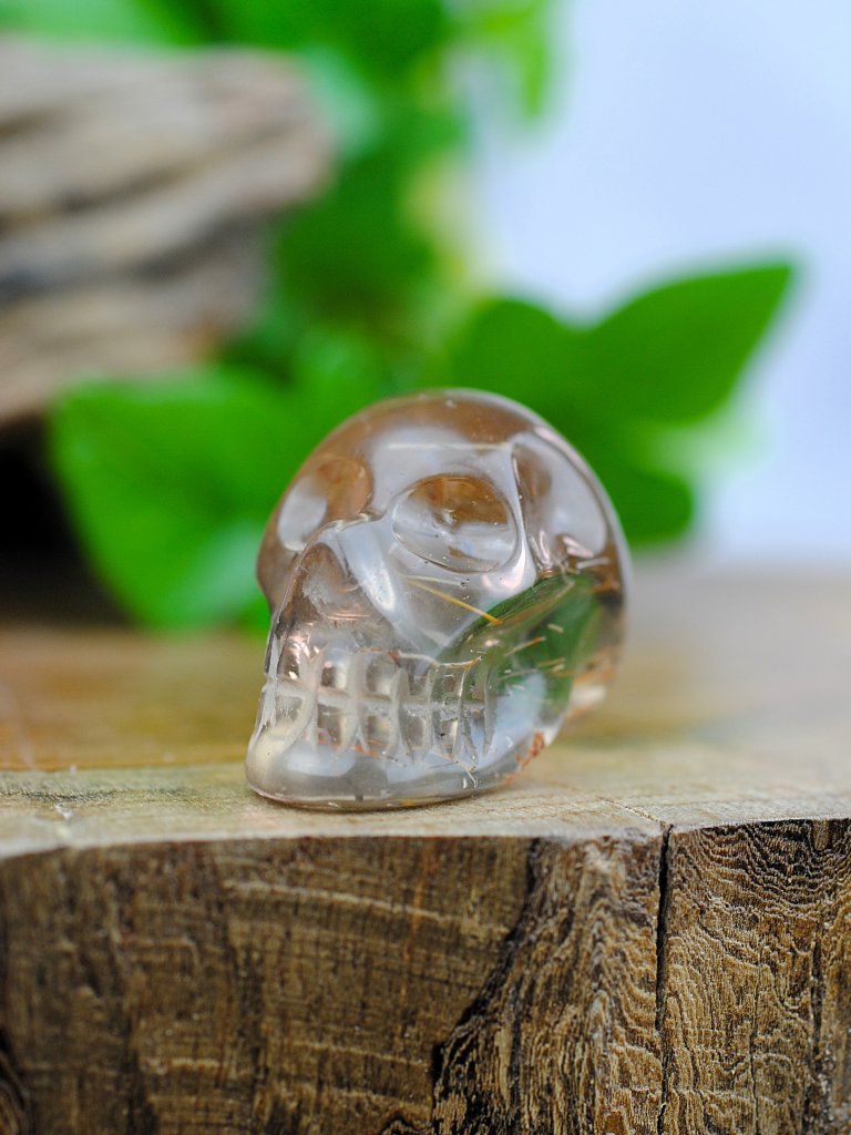 Otroligt fin dödskalle fylld med gyllene trådar och mycket klar i tonen. Dödskallen är handpolerad med fina, tydliga detaljer och av sten i hög kvalitet.