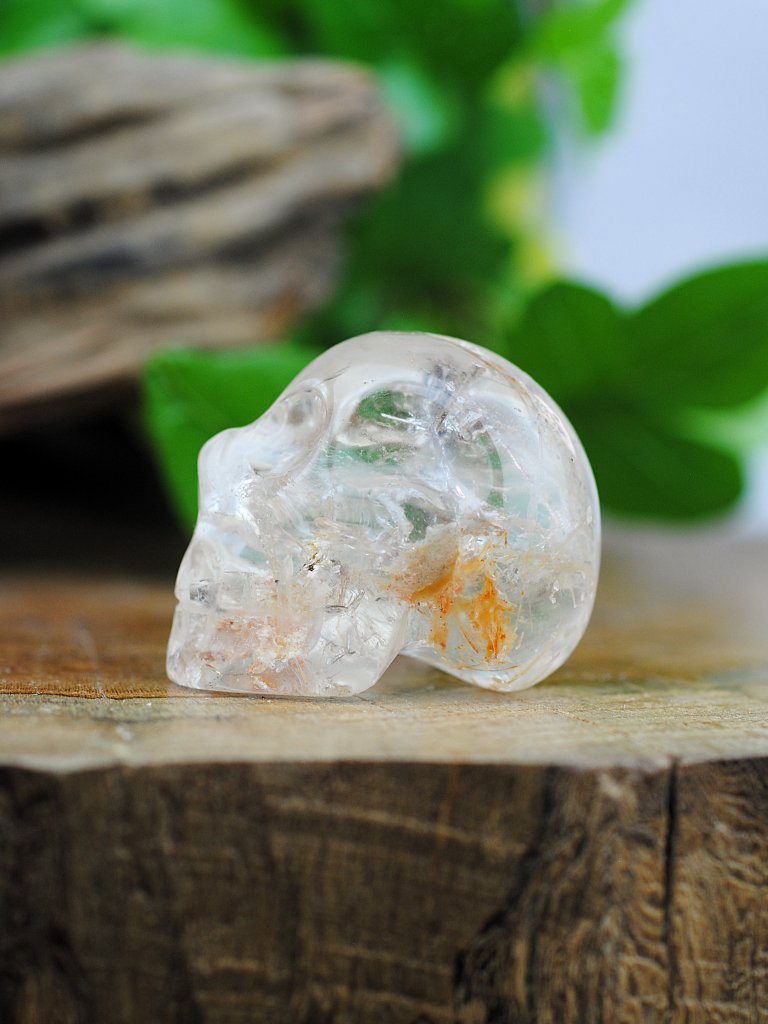 Otroligt fin dödskalle fylld med gyllene trådar och mycket klar i tonen. Dödskallen är handpolerad med fina, tydliga detaljer och av sten i hög kvalitet. Stenen har ett unikt mönster, skimrande inre och mindre naturliga märken.