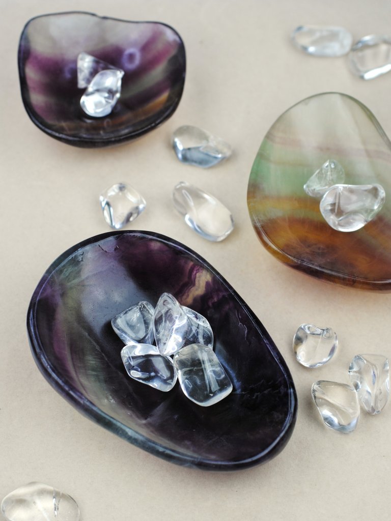 Vackra skålar formade av Fluorit. Skålarna har varierande naturliga nyanser mönster och toner. Observera att skålarna är handgjorda och formerna kan variera något.