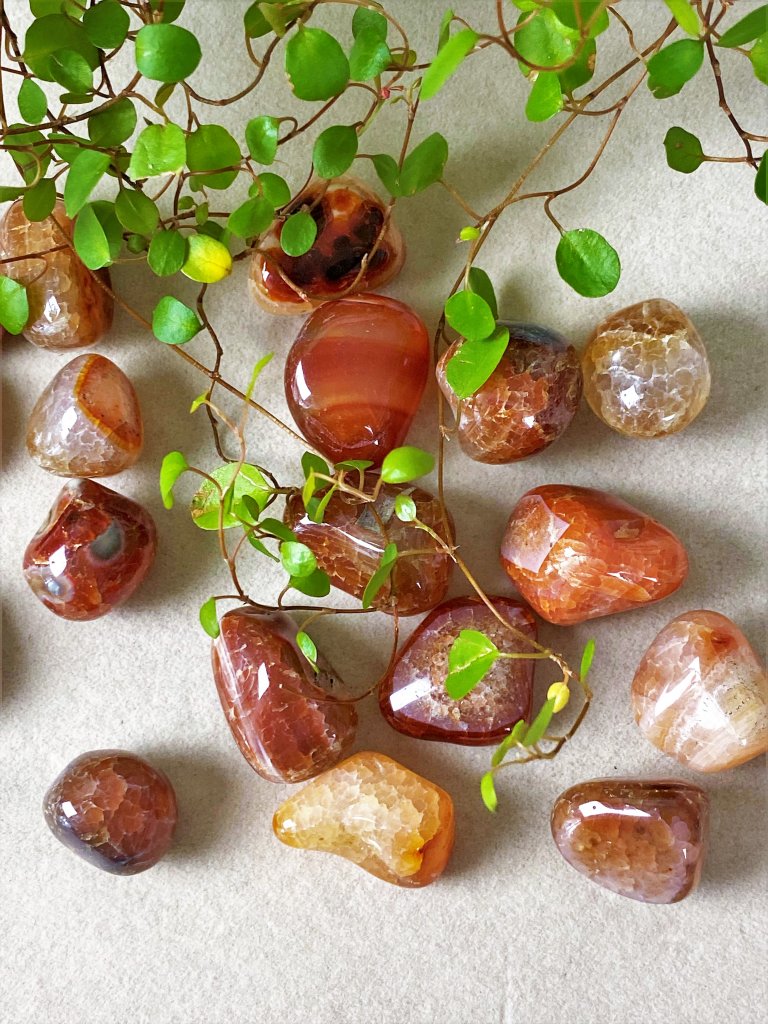 Eld Agat är sten en som hjälper dig att hitta din inre passion och glöd. Den uppmuntrar dig till att våga försöka, ”kasta dig ut” och sträva efter dina mål även om det innebär risker. Den skyddar dig mot negativitet både från din omgivning och även i ditt sinne. Eld Agat hjälper dig att se din fulla potential och se din inre styrka.