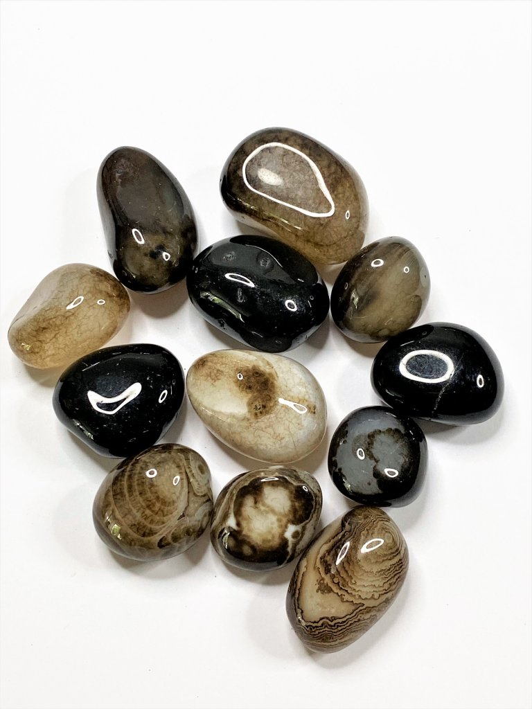 Svart Agat är en jordande och grundande sten som bär på beskyddande energier. Den hjälper dig att hitta och återfå lugn inom dig för att sträva efter balans och stabilitet inom dig och i livet. Den kan bidra till en starkare inre kraft att våga gå vidare och inte bli stillastående i känslor, utveckling eller under livets resa.