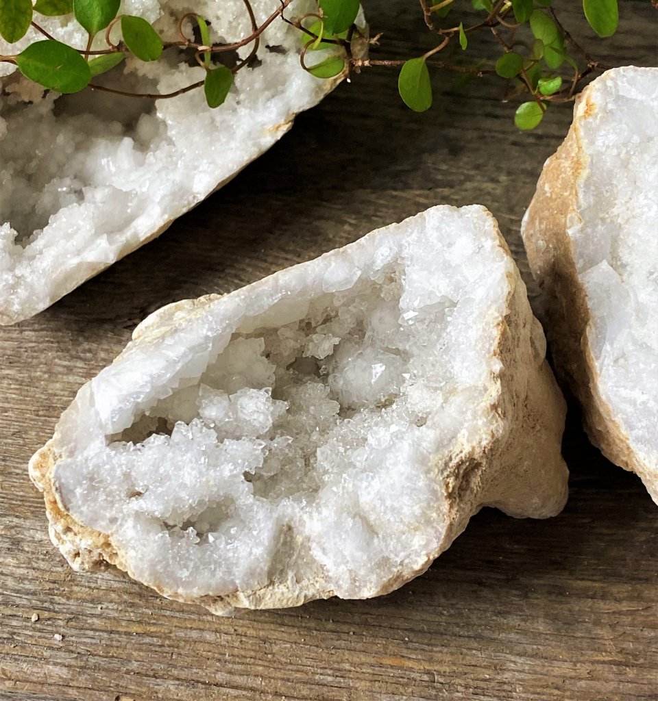 Kalcit Geoder i halvor fyllda med gnistrande kristaller, perfekta att ladda dina stenar/kristaller i.
