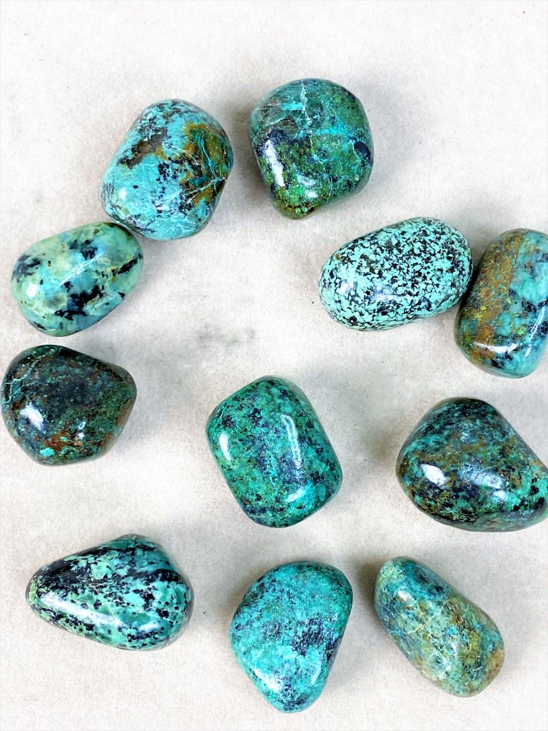 Krysokolla har en lugnande energi, den är mycket bra att ha när det är stressigt och oroligt. En starkt beskyddande sten, tar bort negativitet, skapar en balans vid förändringar.