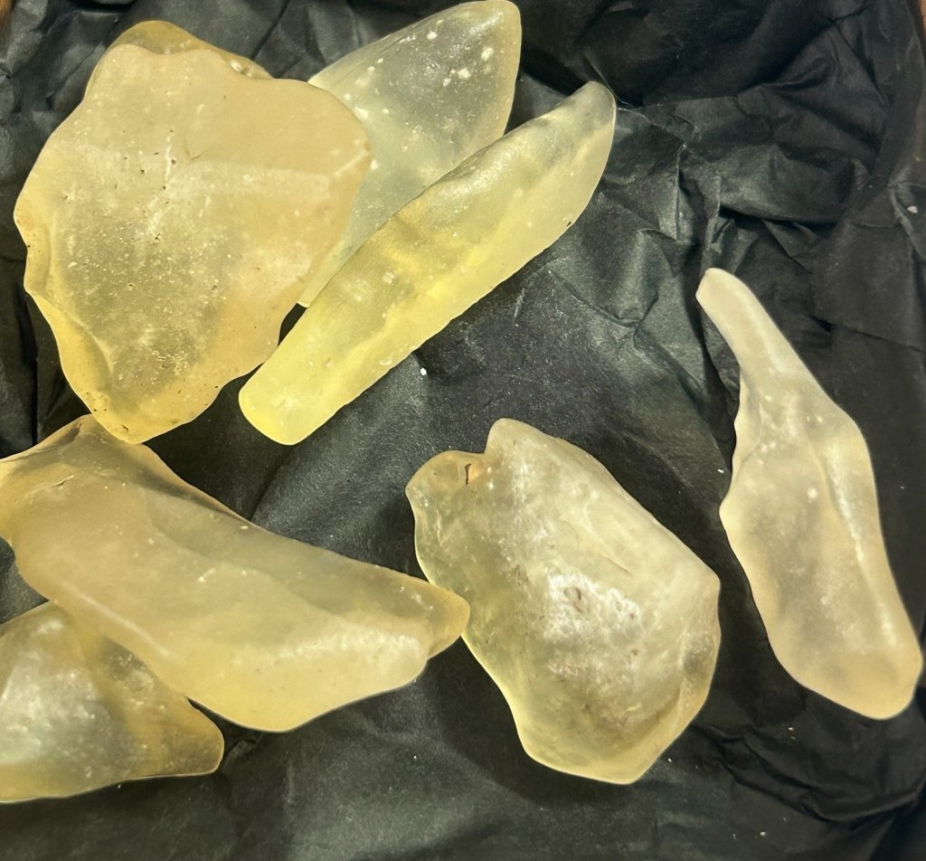 Libyskt öken glas har uppkommit genom ett meteorit nedslag för ungefär 28,5 miljoner år sedan. Sanden smälte och bildade detta öken glas. Den hittas väster om Egypten. Libyskt öken glas har använts i århundraden för att pryda smycken, föremål, amuletter mm. Bland annat har en skarabé tillverkats i öken glaset åt Tutankhamon.