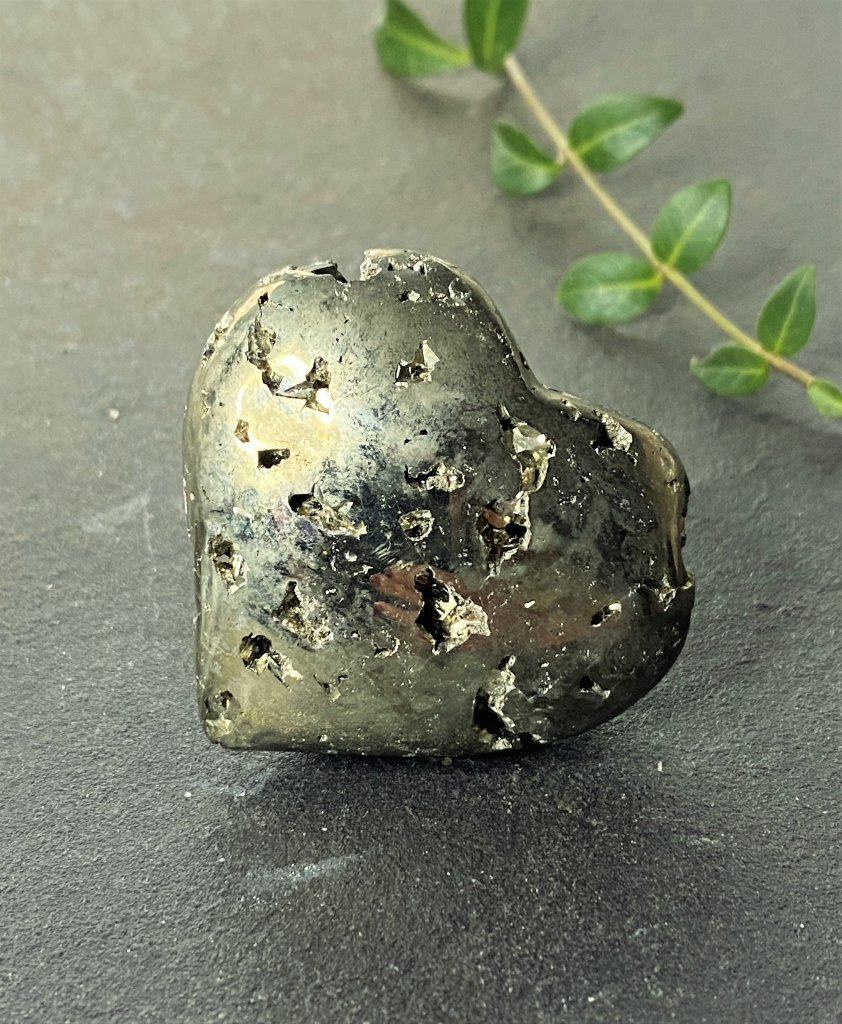 Vackra polerade hjärtan av Pyrit i högsta kvalitet. Dessa hjärtan har ett mycket fint skimrande yttre med flera kratrar fyllda med gnistrande kristaller. Detta ger varje hjärta ett helt orginellt yttre och gör varje sten unik.