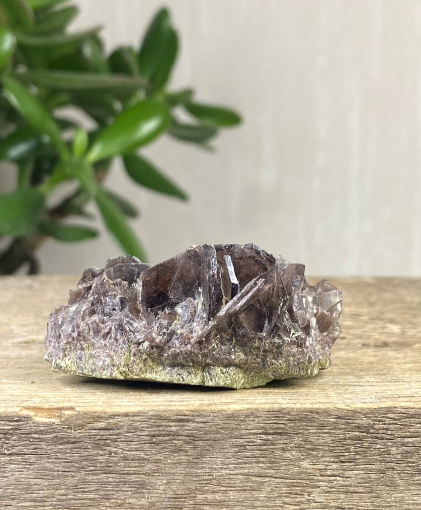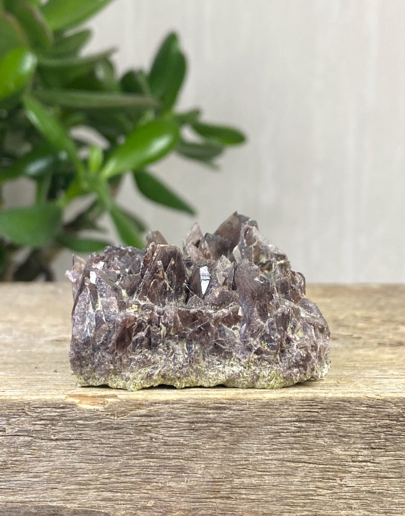 Klustret består av vackra glänsande skivor som sprider sig ut över kristallen.