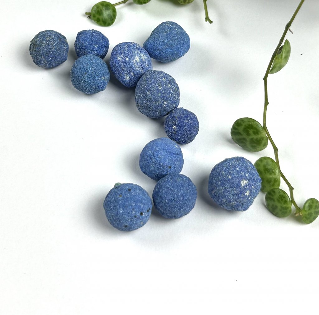 Blueberry Azurit bildas som ett resultat av konkretion, Azurit som rullar runt i vatten och sediment, som när de torkat bildar den rundade formen.