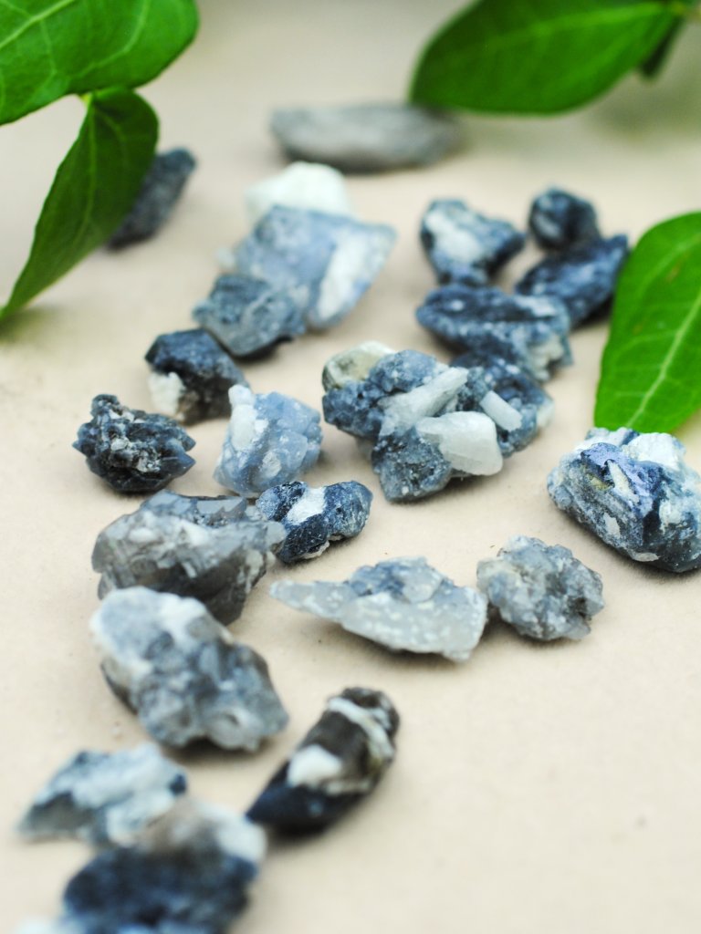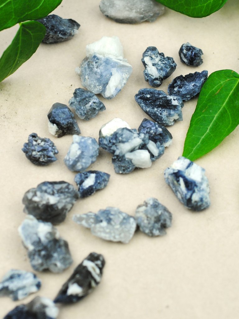 Mycket fina bitar av rå blå Turmalin. Stenarna är helt naturliga och varierar därmed både i storlek och form.