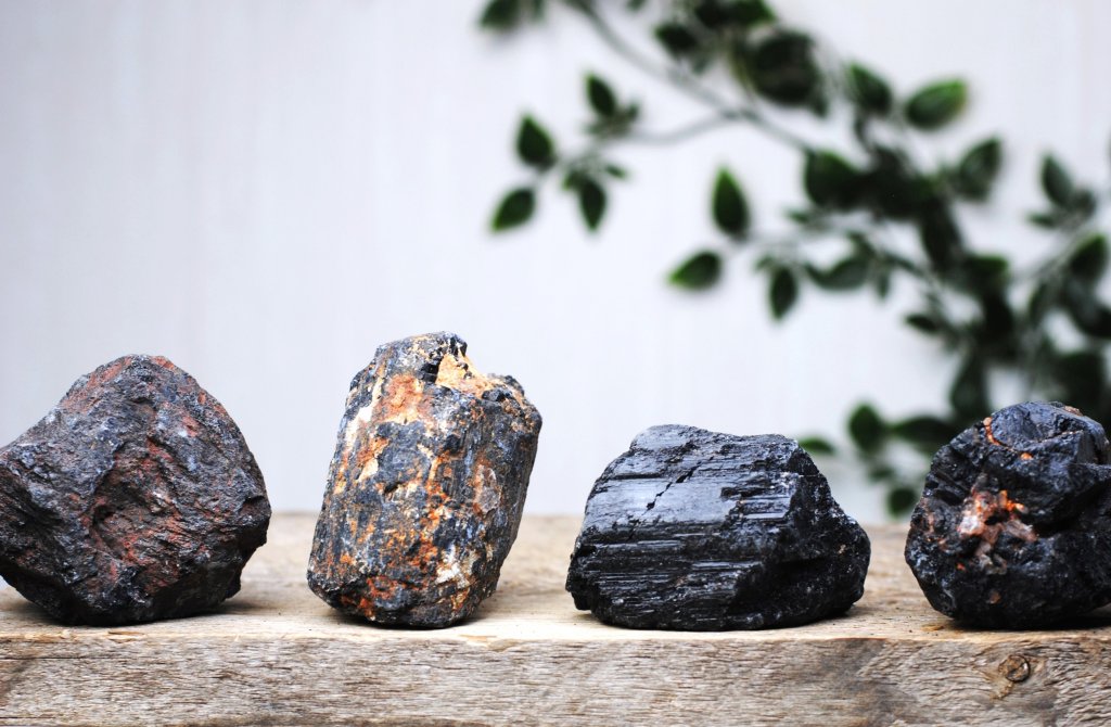 Stora råa bitar av mycket fin svart Turmalin.