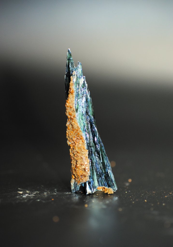 Fantasitskt fin Vivianit i större storlek. Denna kristall har mörka glänsande toner där de naturliga färgerna lyser igenom i ljuset.