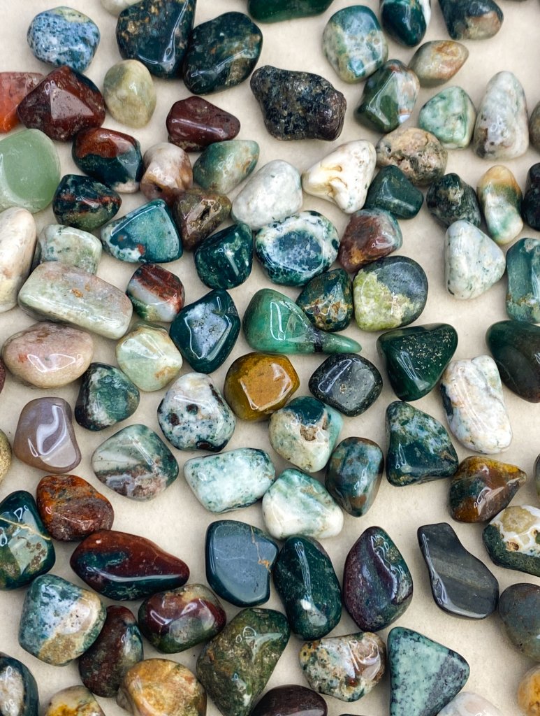 Fina mindre trumlade stenar i varierande former, naturliga mönster och färger.