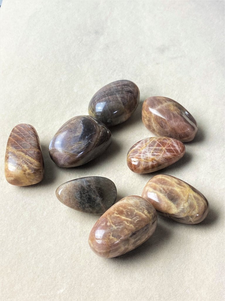 Man kan ofta se att Svart Månsten har persikefärgade linjer i sig.