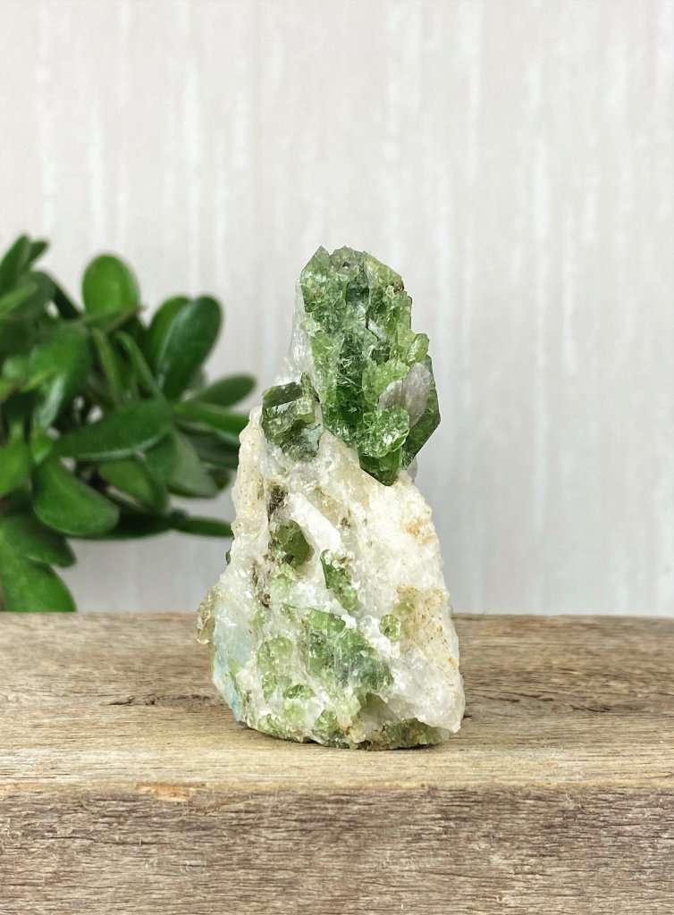 Otroligt vacker Krom Diopsid på Matrix. Mycket unik sten med fina kristaller i mycket hög kvalité. Detta gör kristaller i denna form till en eftertraktad sten bland samlare.
