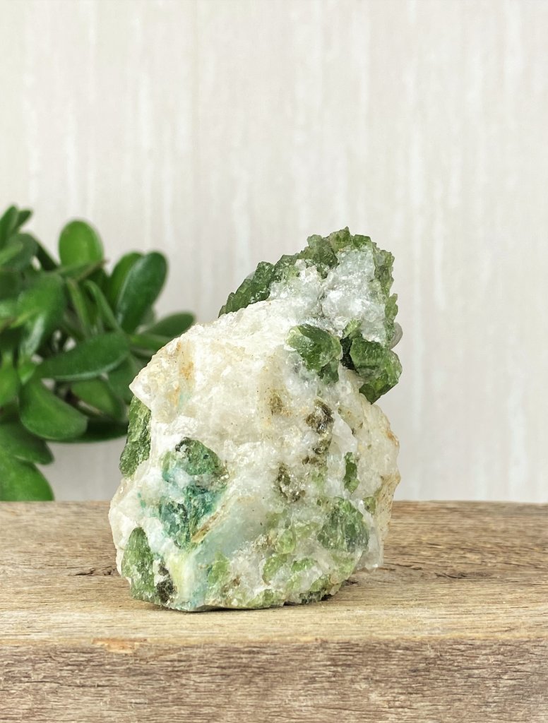 Diopsid överför sin vibration genom hela chakra systemet. Den stimulera och aktivera läkning inom alla chakran vid balanseringen. Den är en utmärkt sten för känslomässigt läkning, eftersom det förbättrar din förmåga att älska dig själv och andra, och din förmåga att både ge och ta emot kärlek.